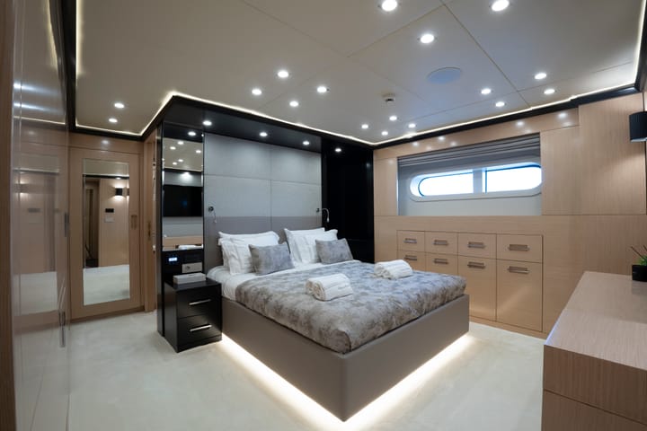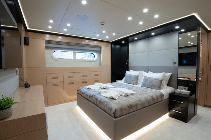 Ultraluxe motorjacht met stalen romp en aluminium bovenbouw biedt jachtchartervaring in het topsegment met moderne technische kennis en een tijdloos ontwerp. Dankzij de duurzame structuur, de hoge grip op zee en het lange cruisecomfort is het een ideale optie voor offshore-reizen. In het interieurontwerp worden eikenhout en gerookt eikenhout gecombineerd met marmeren afwerkingen; er wordt een verfijnde leefruimte gecreëerd met lederen afwerkingen en exclusieve kunstdecoraties. Het speciale meubilair dat in de ruime lounge en cabines wordt gebruikt, biedt een combinatie van luxe en comfort. Het jacht heeft een Turkse vlag, een commerciële en onbeperkte vaarbevoegdheid. De woonkamer en alle cabines zijn voorzien van een LED-tv, een WiFi-verbinding en een thuisbioscoopsysteem; professionele muzieksystemen, PlayStation- en computergames en entertainmentfaciliteiten zijn naar een hoger niveau getild. Het jacht is volledig uitgerust op het gebied van navigatie- en beveiligingssystemen en beschikt over radar-, GPS-, VHF-, Navtex-, SART-, EPIRB-, AIS-, dieptemeter- en GMDSS-systemen. Bovendien wordt een veilige en ononderbroken navigatie gegarandeerd door een waterzuiveraar met een inhoud van 2 x 400 liter en volledig geregelde veiligheidsuitrusting. Het motorjacht, dat beschikt over een zeer uitgebreide uitrusting voor watersport en watervermaak, omvat twee speedboten met motoren van 140 pk en 90 pk, windsurfen, kano, wakeboard, 2 paddleboards, snorkel- en visuitrusting, waterski, ringo, zeeglijbaan, Seabob en jetski. Dit exclusieve motorjacht biedt luxe, prestaties en entertainment en belooft een unieke blauwe cruise-ervaring voor gezinnen, vriendengroepen en gasten die op zoek zijn naar een VIP-jachtcharter.