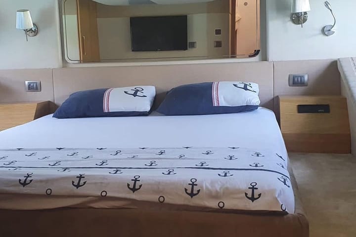 Het model van 2017, een op maat gemaakt motorjacht van 14 meter lang, is ontworpen om een comfortabele en veilige blauwe cruise-ervaring te bieden in de baaien van Gocek en Fethiye. Dankzij de uitgebalanceerde rompstructuur met een breedte van 4,40 meter zorgt hij voor een hoge stabiliteit, zowel tijdens het cruisen als bij het aanmeren. Met in totaal 3 cabine-indelingen heeft het motorjacht 2 mastercabines en 1 dubbele cabine. Het feit dat elke hut een eigen badkamer heeft, biedt maximale privacy en comfort voor een verblijf van maximaal 6 personen. Dankzij de krachtige motoruitrusting biedt het motorjacht prestaties en vaart het soepel. Het zorgt voor aangename routes tussen de baaien van Göcek met een ideale snelheid en een ideale brandstofbalans. De structuur, die een maximumsnelheid van 22 knopen kan bereiken, biedt een combinatie van tijdefficiëntie en cruisecomfort. Aan boord van de boot, die wordt vergezeld door een professionele kapitein en bemanning, zijn er aparte woonruimtes voor de bemanning. Eethoeken binnen en buiten, ruime zitgroepen, zonnematten en ontspanningsruimtes creëren de hele dag door een comfortabele leefruimte. Apparatuur zoals een volledig uitgeruste keuken, Amerikaanse bar, airconditioning, tv, wifi, generator, webasto en waterspeelgoed is ontworpen om aan alle behoeften te voldoen tijdens uw Blue Cruise-vakantie. De mogelijkheid om aankopen van de chef te plannen vóór de bootvakantie biedt gasten een flexibele en gepersonaliseerde vakantie-ervaring. Gasten die dat willen, kunnen hun eigen aankopen doen of deze service aanvragen bij de bemanning van de boot. De blauwe cruise vanuit Göcek is een ideale keuze voor gasten die willen samenleven met zee, natuur en comfort met wekelijkse of dagelijkse huurmogelijkheden voor motorjachten. Het biedt een onvergetelijke bootvakantie met ligplaats in rustige baaien, zwempauzes en aangename diners.