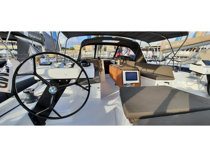 3 -cabine Dufour 470 zeilboot werd gebouwd in 2025 en ligt verankerd in Cagliari, Italië. De zeilboot is geschikt voor maximaal 8 personen . De zeilboot biedt 2 badkamers. De zeilboot kan worden gehuurd als bareboat . Kenmerken van bootuitrusting 1 motor, full batten grootzeil, zelfklevende jib en boegschroef. Het bevat ook luidspreker voor buiten. De volledig uitgeruste kombuis bevat koelkast. deze gastheer is lid van viravira.co sinds 2025 .