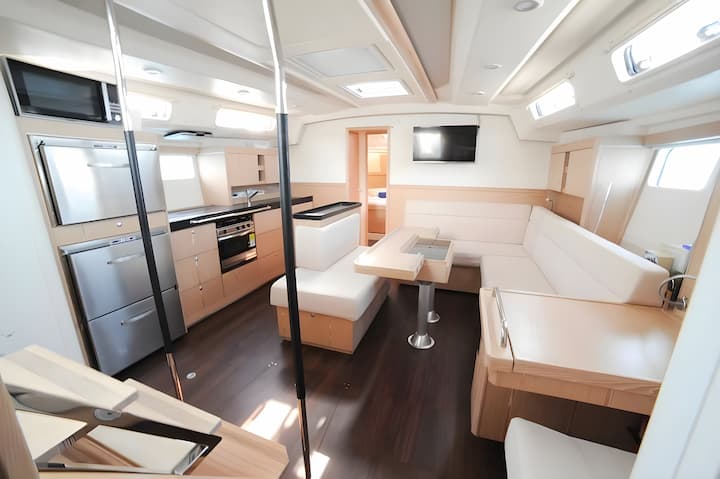 6 -cabine Hanse 505 zeilboot werd gebouwd in 2017 en ligt verankerd in Ibiza, Spanje. De zeilboot is geschikt voor maximaal 11 personen . De zeilboot biedt 3 badkamers. De zeilboot wordt bestuurd door een professionele schipper . Kenmerken van bootuitrusting 1 motor, full batten grootzeil en zelfklevende jib. Het bevat ook tv, luidspreker voor buiten en luidspreker aan de binnenkant. De volledig uitgeruste kombuis bevat koelkast, keukenapparatuur, magnetron, diepvriezer, oven, kookplaat en koffiemachine. onze ervaren partner is lid van viravira.co sinds 2019 .