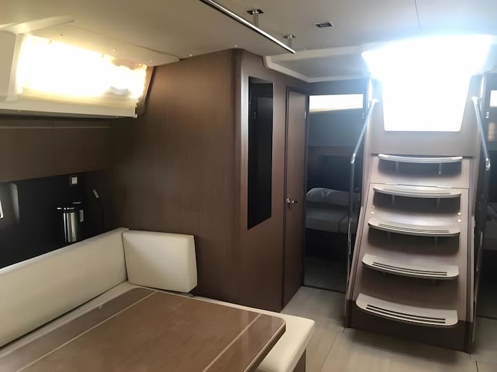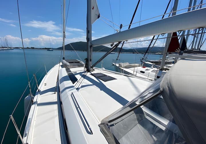 6 -cabine Beneteau Oceanis 51.1 zeilboot werd gebouwd in 2020 en ligt verankerd in Lefkada, Griekenland. De zeilboot is geschikt voor maximaal 12 personen . De zeilboot biedt 3 badkamers. De zeilboot kan worden gehuurd als bareboat . Kenmerken van bootuitrusting 1 motor, full batten grootzeil, zelfklevende jib en boegschroef. Het bevat ook luidspreker voor buiten en luidspreker aan de binnenkant. De volledig uitgeruste kombuis bevat koelkast, keukenapparatuur, oven en kookplaat. de vlootbeheerder is lid van viravira.co sinds 2019 .