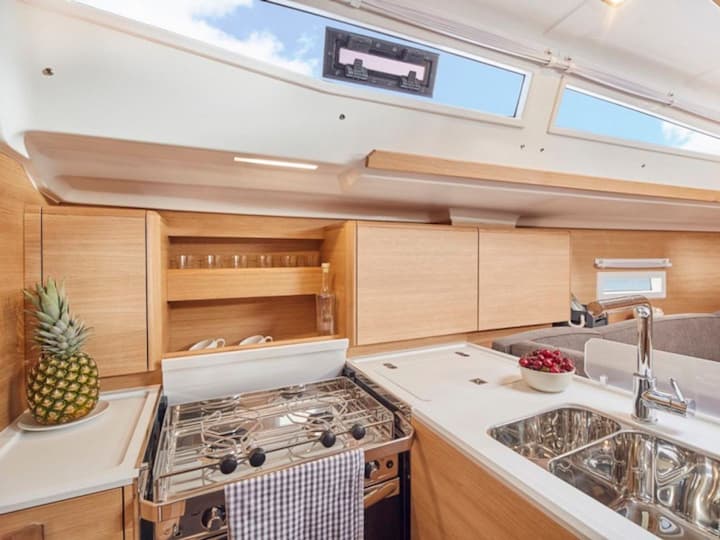 3 -cabine Elan E4 Performance zeilboot werd gebouwd in 2019 en ligt verankerd in Pirovac, Kroatië. De zeilboot is geschikt voor maximaal 6 personen . De zeilboot biedt 1 badkamers. De zeilboot kan worden gehuurd als bareboat . Kenmerken van bootuitrusting 1 motor, full batten grootzeil en zelfklevende jib. Het bevat ook tv. De volledig uitgeruste kombuis bevat koelkast. de vlootbeheerder is lid van viravira.co sinds 2019 .