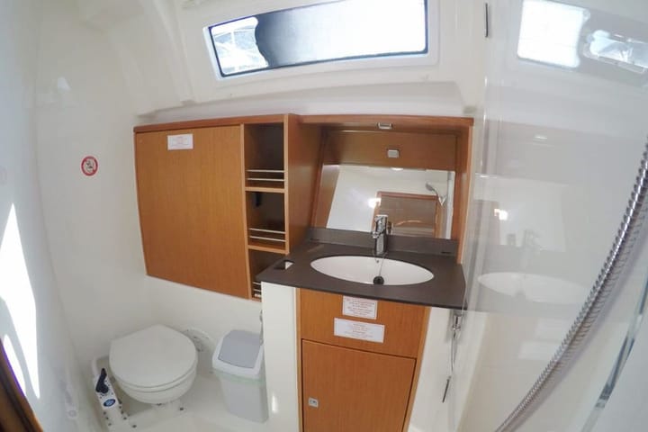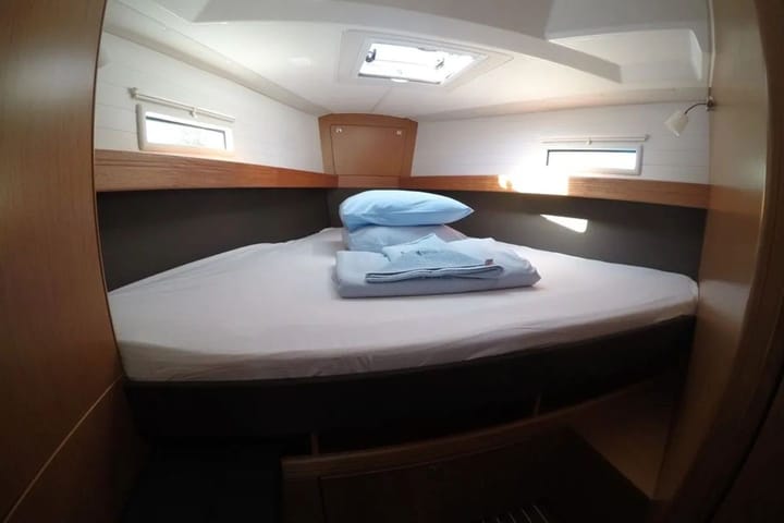 3-cabin Bavaria 41 Cruiser sailboat was built in 2018 and it is anchored in Gocek, Turkey. The sailboat can accommodate up to 6 people with 3 Double Cabin. The sailboat offers 2 bathrooms. This sailboat also provides 2 showers. The sailboat can be rented as bareboat. Boat equipment features 1 motor, full batten main sail, self-tacking jib and bow thruster. It also boasts an outside speaker. The fully-equipped galley includes a refrigerator, kitchen equipment, microwave, freezer and stovetop. This sailboat is operated by the listing owner Christina. Christina is a viravira.co member since 2019.