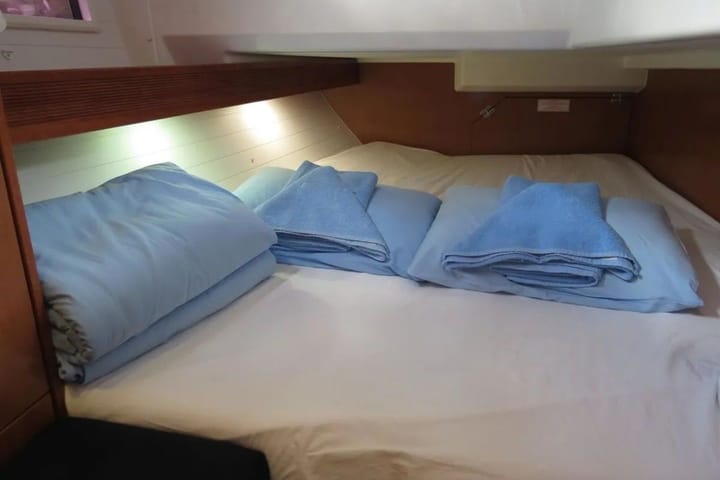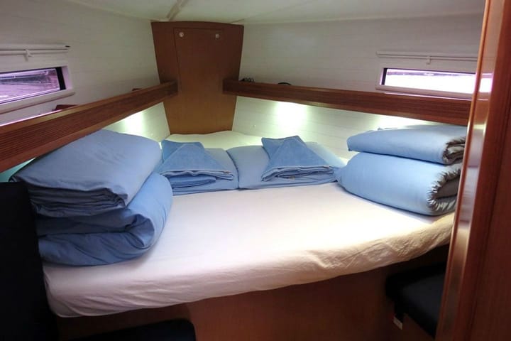 3-cabin Bavaria 40 Cruiser sailboat was built in 2012 and it is anchored in Gocek, Turkey. The sailboat can accommodate up to 6 people. The sailboat offers 2 bathrooms. This sailboat also provides 2 showers. The sailboat can be rented as bareboat. Boat equipment features 1 motor, full batten main sail, self-tacking jib and bow thruster. It also boasts an inside speaker. The fully-equipped galley includes a refrigerator, kitchen equipment, oven and stovetop. This sailboat is operated by the listing owner Christina. Christina is a viravira.co member since 2019.