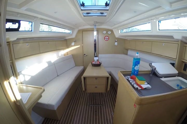 2-cabin Bavaria 34 Cruiser sailboat was built in 2019 and it is anchored in Gocek, Turkey. The sailboat can accommodate up to 6 people with 2 Double Cabin and a saloon with a capacity of 2 extra beds person. The sailboat offers 1 bathrooms. This sailboat also provides 1 showers. The sailboat can be rented as bareboat. Boat equipment features 1 motor, full batten main sail, self-tacking jib and bow thruster. It also boasts an outside speaker and inside speaker. The fully-equipped galley includes a refrigerator, kitchen equipment, oven and stovetop. This sailboat is operated by the listing owner Christina. Christina is a viravira.co member since 2019.