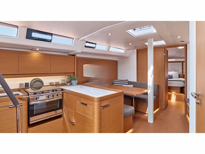 3-cabin Beneteau First 44 sailboat was built in 2023 and it is anchored in Lavrion, Greece. The sailboat can accommodate up to 6 people. The sailboat offers 2 bathrooms. The sailboat can be rented as bareboat. Boat equipment features 1 motor, full batten main sail, self-tacking jib, electric windlass and bow thruster. The fully-equipped galley includes a refrigerator. This sailboat is operated by the listing owner Stelios. Stelios is a viravira.co member since 2024.