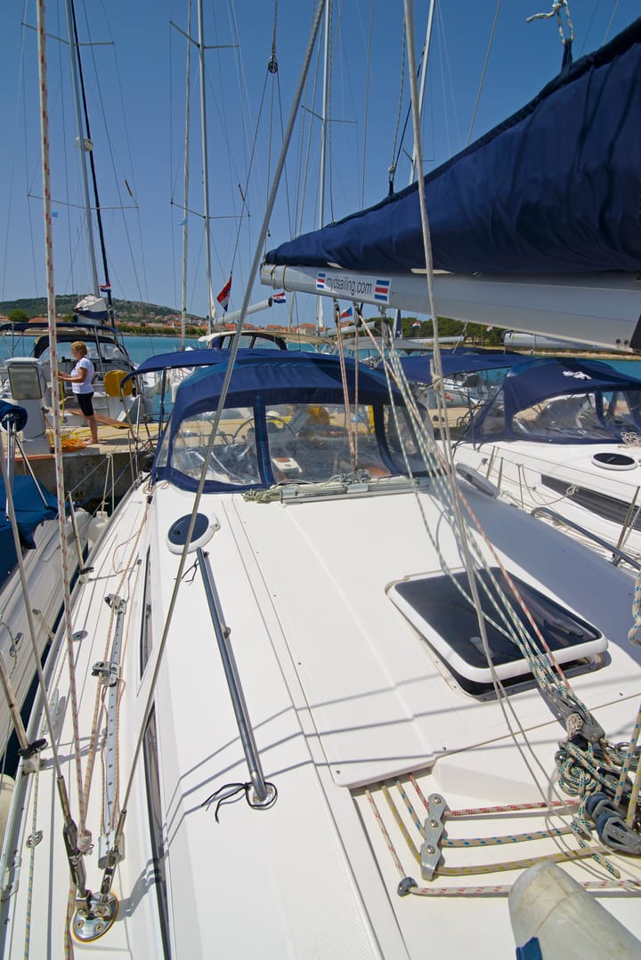 3-cabin Elan 344 Impression sailboat was built in 2006 and it is anchored in Murter, Croatia. The sailboat can accommodate up to 7 people. The sailboat offers 1 bathrooms. The sailboat can be rented as skippered or bareboat. Boat equipment features full batten main sail and self-tacking jib. The fully-equipped galley includes a refrigerator. This sailboat is operated by the listing owner Sanja. Sanja is a viravira.co member since 2019.