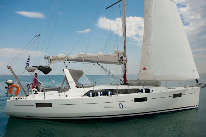 3-cabin Beneteau Oceanis 41.1 sailboat was built in 2018 and it is anchored in Athens, Greece. The sailboat can accommodate up to 6 people. The sailboat offers 2 bathrooms. The sailboat can be rented as bareboat. Boat equipment features 1 motor, full batten main sail, self-tacking jib and bow thruster. It also boasts a tv, outside speaker and inside speaker. The fully-equipped galley includes a refrigerator, kitchen equipment, oven and stovetop. This sailboat is operated by the listing owner Vastardis. Vastardis is a viravira.co member since 2019.