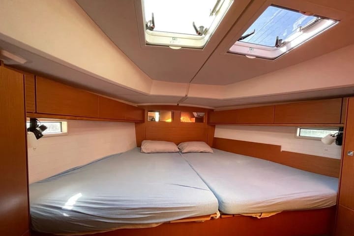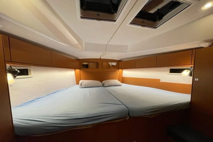With its modern design and comfortable living spaces, Bavaria Cruiser 46 is an ideal sailing yacht option for an unforgettable sea holiday on the shores of Turkey. This stylish sailboat can accommodate up to 9 people and provides a comfortable sailing experience with 4 double cabins with bunk beds and a lounge with the possibility of an extra bed. Pillows and blankets are included in the price. Equipped with 3 toilets and a shower, Bavaria Cruiser 46 keeps comfort at the forefront even on long journeys. Boat equipment includes winding mainsail, solar panels, bimini awning and bow propeller. In addition, thanks to the heater, sound system, deck and cockpit speakers, a cruise full of both music and comfort is possible. The fully equipped kitchen includes a fridge, an oven, a stove, a sink and kitchenware. With its large deck area and ergonomic cockpit, the Bavaria Cruiser 46 is an excellent choice for both experienced sailors and family holidays.