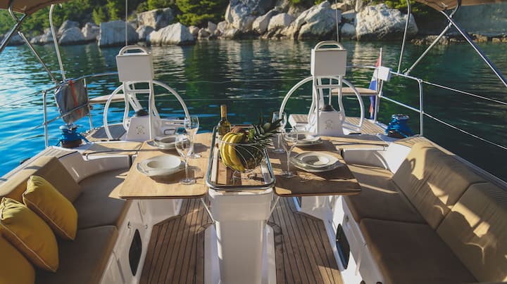 5-cabin Elan 50 Impression sailboat was built in 2016 and it is anchored in Split, Croatia. The sailboat can accommodate up to 12 people. The sailboat offers 2 bathrooms. The sailboat can be rented as bareboat. Boat equipment features 1 motor, full batten main sail, self-tacking jib and bow thruster. It also boasts a tv and inside speaker. The fully-equipped galley includes a refrigerator, kitchen equipment, oven, stovetop and coffee machine. Our experienced partner is a viravira.co member since 2019 and a Super Boat Owner.