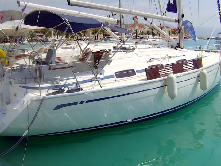 2-cabin Bavaria 33 Cruiser sailboat was built in 2008 and it is anchored in Trogir, Croatia. The sailboat can accommodate up to 6 people. The sailboat offers 1 bathrooms. The sailboat can be rented as bareboat. Boat equipment features 1 motor, full batten main sail and self-tacking jib. It also boasts a tv, outside speaker and inside speaker. The fully-equipped galley includes a refrigerator, kitchen equipment and oven. This host is a viravira.co member since 2019.