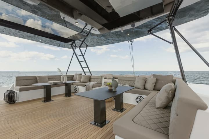 4 kabinli Özel Yapım katamaran 2025 yılında inşa edildi ve şu anda Lefkada, Yunanistan lokasyonunda bağlıdır. Katamaran, 8 kişiyi ağırlayabilir. Katamaran tipi teknede 4 banyo bulunuyor. Katamaran profesyonel bir kaptan tarafından yönetilir. Tekne ekipmanları şunları kapsamaktadır: 2 motor, tam çıta yelken ana yelken, klasik cenova ve baş pervane. Ayrıca tv, dış mekan hoparlör ve i̇ç mekan hoparlör içermektedir. Tam donanımlı mutfakta, buzdolabı, buz makinesi, mutfak ekipmanları, mikrodalga, dondurucu, ocak ve set üstü ocak yer almaktadır. Deneyimli partnerimiz, 2019 tarihinden beri viravira.co üyesidir.