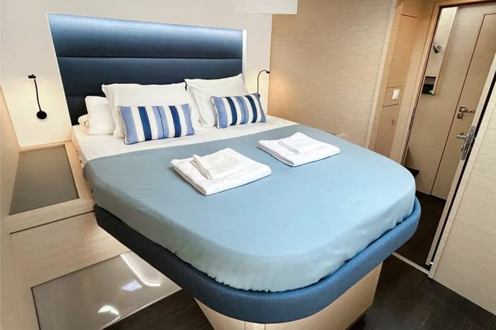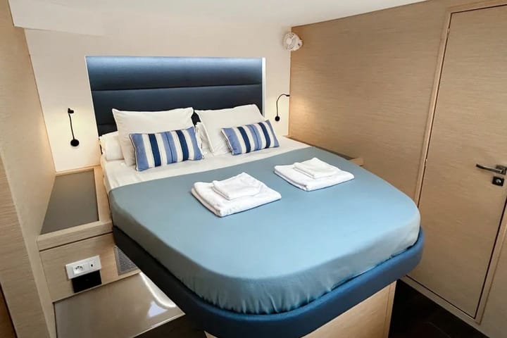 Fountaine Pajot Tanna 47 – 2024 üretimi geniş yaşam alanları, modern teknolojileri ve güçlü donanımıyla Marmaris Adaköy Marina’da lüks ve konforlu bir katamaran deneyimi sunuyor. 11 kişiye kadar misafir kapasitesi bulunan; 4 çift kişilik kabin, 1 ranzalı iki kişilik kabin ve 1 tek kişilik kabin ile ideal bir yerleşim sunar. Single kabin, talep halinde kaptana tahsis edilebilir. Salon alanında da ek konaklama imkânı mevcuttur. Toplam 6 adet tuvalet ve duş ile geniş gruplar için yüksek konfor sağlar. Katamaran, klasik ana yelken, electric winches, flybridge, bimini tente ve güçlü güneş panelleri ile donatılmıştır. Salon ve flybridge üzerindeki GPS plotter, dahili otopilot, iç mekân GPS pilotlayıcı ve VHF iletişim sistemleri, uzun rotalarda güvenli ve kolay bir seyir sağlar. Jeneratör, inverter ve ısıtıcı/klima sistemi sayesinde dört mevsim boyunca maksimum konfor sunar. İç yaşam alanları, tam donanımlı bir yüzen ev konforundadır. Geniş salonda ve kabinlerde klima, sıcak-soğuk su sistemi, ergonomik depolama alanları ve modern iç dizayn bulunur. Mutfak bölümü; mikrodalga fırın, ocak, fırın, bulaşık makinesi, kahve makinesi, buzdolabı, dondurucu, buz makinesi, lavabo ve tüm mutfak malzemeleri ile eksiksizdir. Yastıklar, battaniyeler ve havlu setleri fiyata dahildir. Dış yaşam alanında flybridge, geniş oturma alanları, güneşlenme minderleri ve dış mekan duşu yer alır. Gruplar için keyifli yemek deneyimleri sunan mangal ekipmanı da teknede hazırdır. Dingi ve dıştan takma motor, koylar arasında kolay ulaşım sağlarken; dış mekân hoparlörleri ve salon ses sistemi denizde eğlenceyi üst seviyeye taşır. Enerji bağımsızlığı ve uzun yol konforu için su yapıcı, jeneratör, güneş panelleri ve yüksek kapasiteli batarya sistemi bulunmaktadır. Böylece uzun süre marinaya uğramadan konforla seyir yapmak mümkündür. Fountaine Pajot Tanna 47, Marmaris çıkışlı mavi yolculuklarda hem geniş aile grupları hem de profesyonel kaptanlı turları tercih eden misafirler için mükemmel bir lüks katamaran seçeneğidir. Geniş hacmi, modern teknolojileri ve yüksek konfor seviyesi ile Ege ve Akdeniz’in en özel koylarında unutulmaz bir tatil sunar.