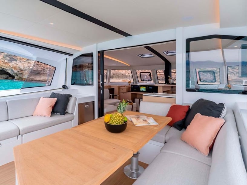 What are the dining options on board a bareboat in Lignano Sabbiadoro?